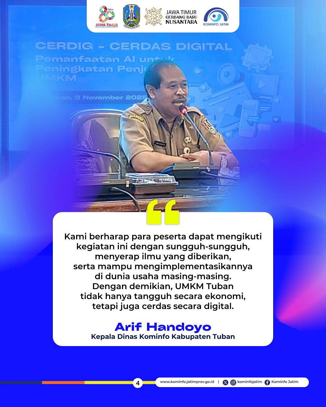 Harapannya setelah ini, UMKM Tuban tidak hanya tangguh secara ekonomi, tetapi juga cerdas secara digital, siap menghadapi era teknologi baru dengan bijak dan produktif!