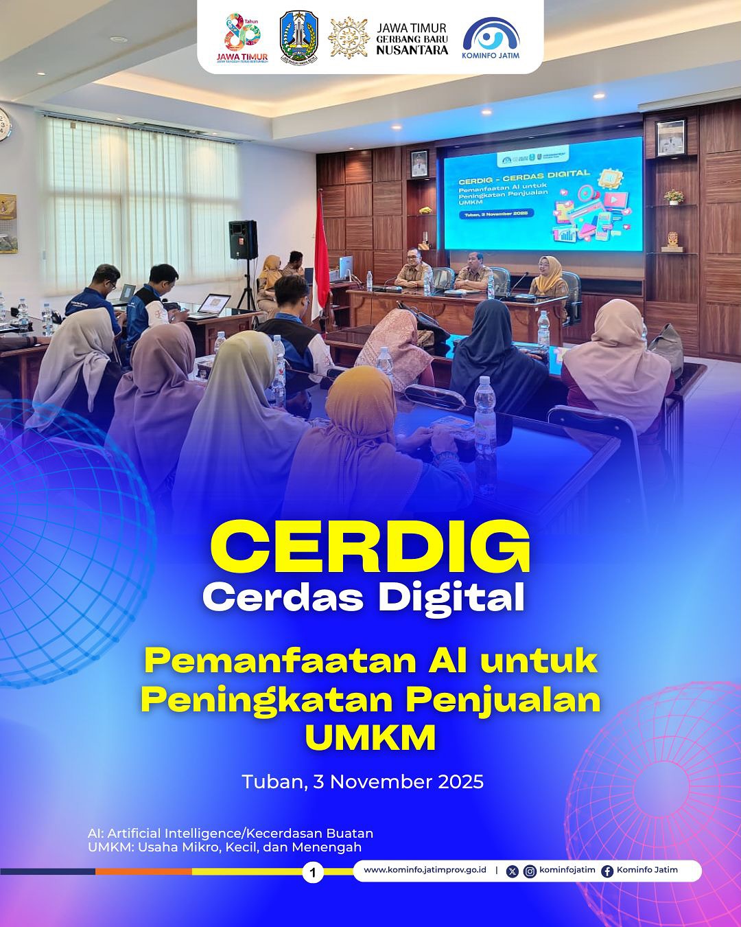 80 pelaku UMKM di Kabupaten Tuban antusias mengikuti pelatihan CERDIG Batch terbaru (3/11) dengan topik “Pemanfaatan AI untuk Peningkatan Penjualan UMKM.”
