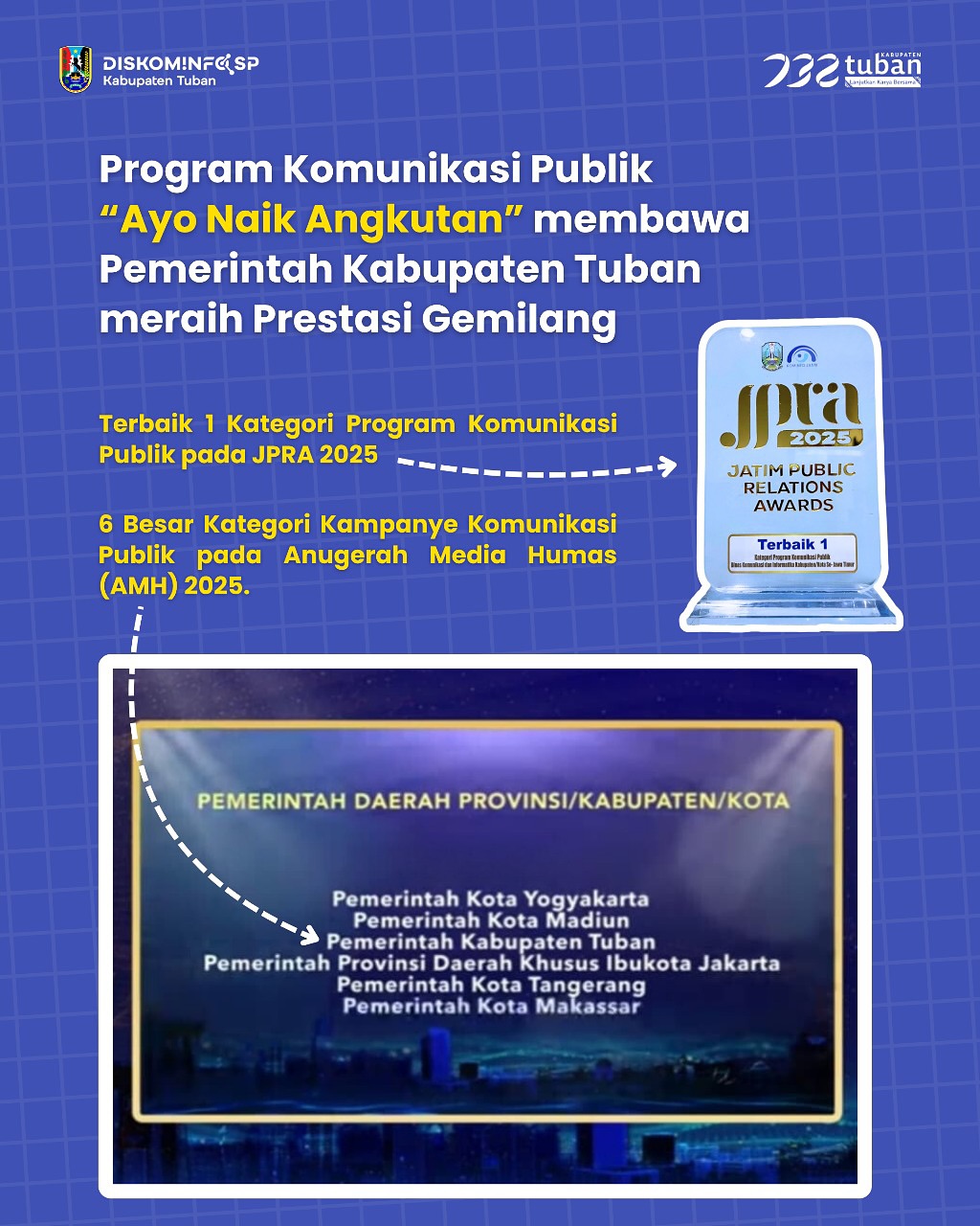 Tuban Melaju! Program ‘Ayo Naik Angkutan’ Raih Terbaik I JPRA 2025 dan Masuk 6 Besar AMH