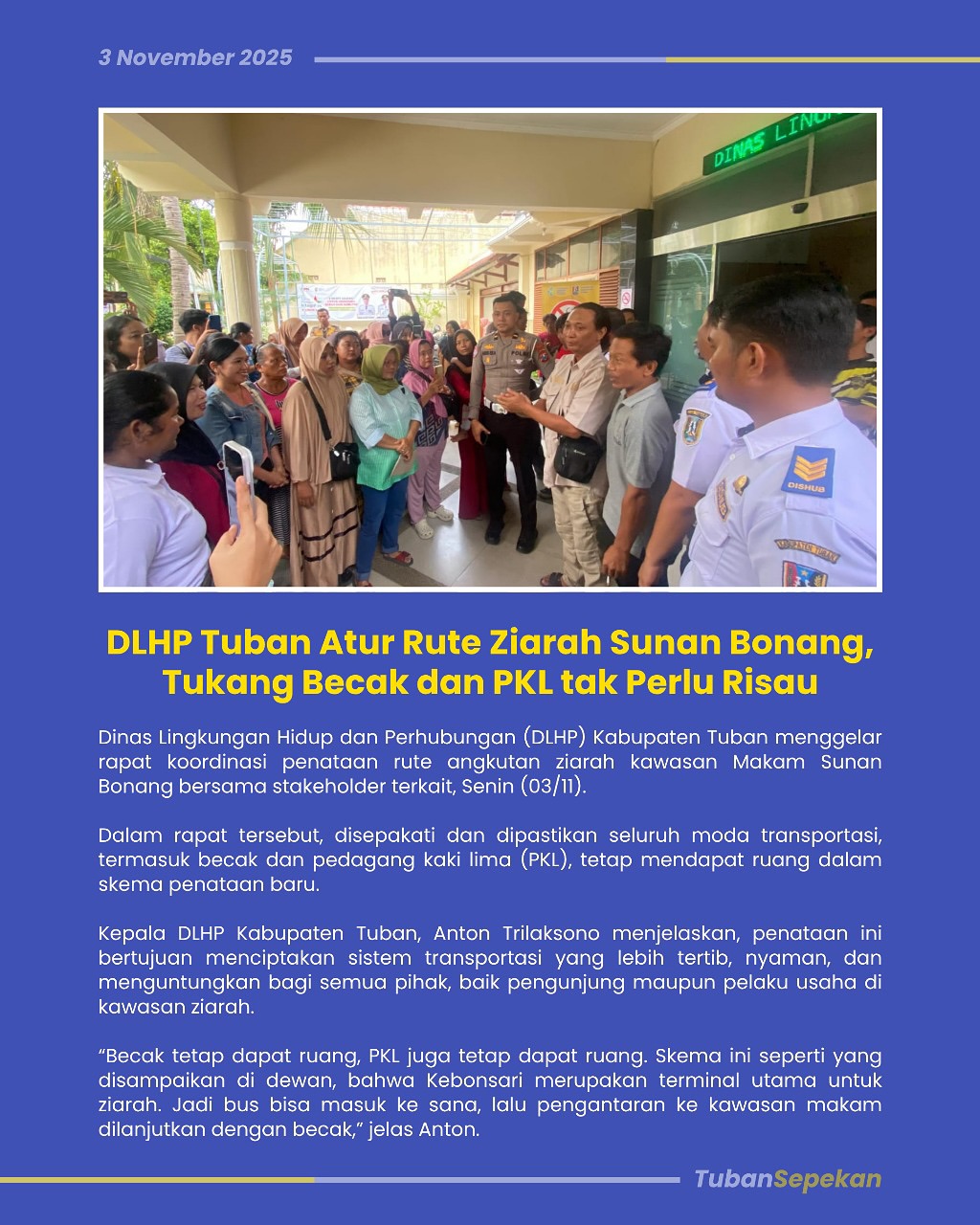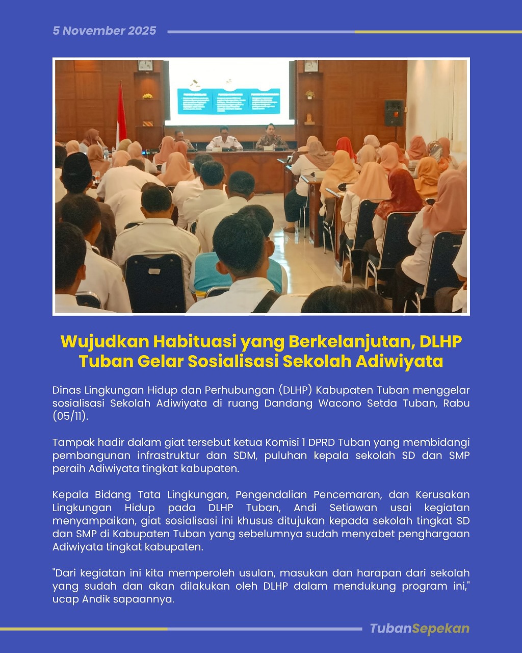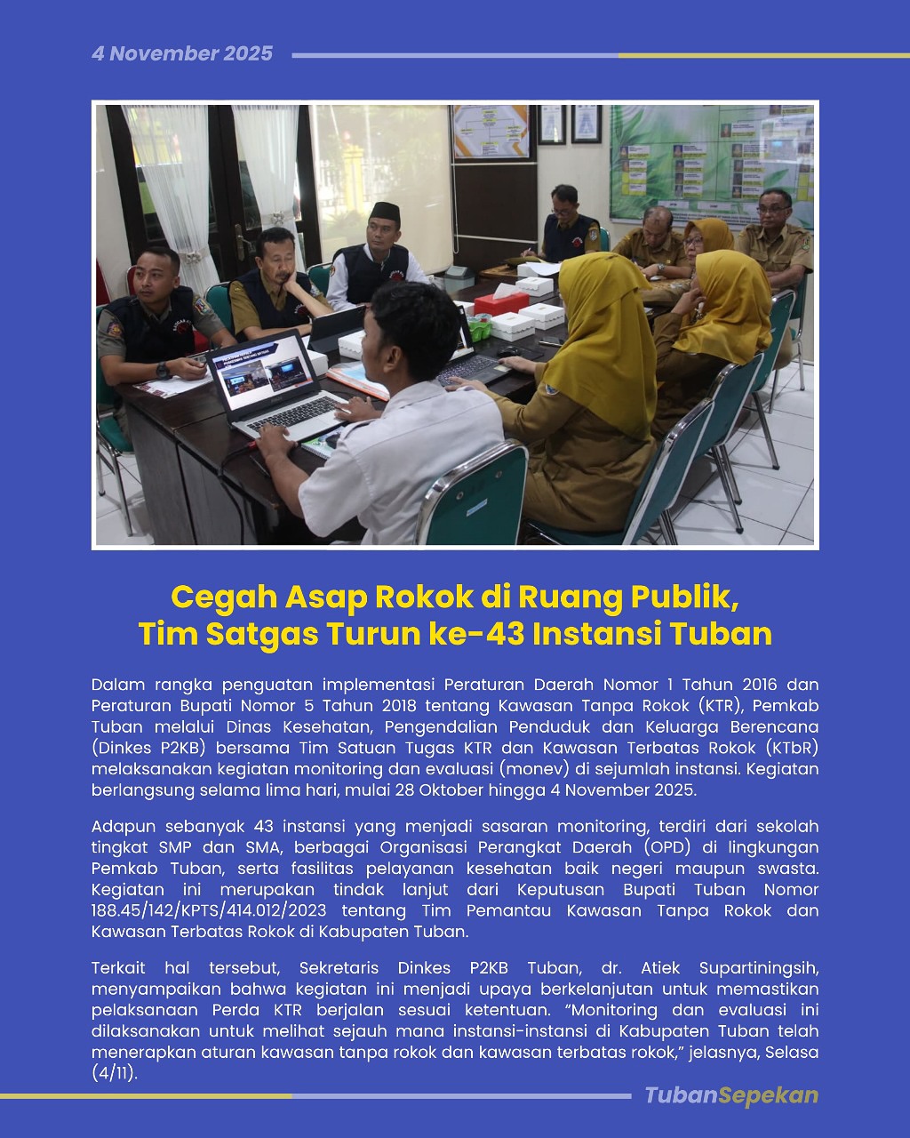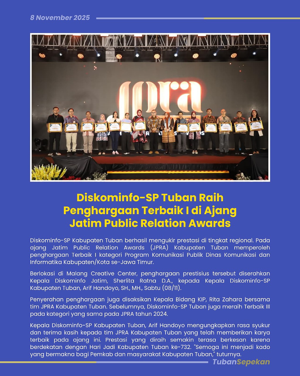 Ada apa di Kabupaten Tuban dalam sepekan? Kami rangkum semuanya nulai dari, kegiatan di pemerintahan, penghargaan sampai update pembangunan di Kabupaten Tuban. Jangan sampai ketinggalan!